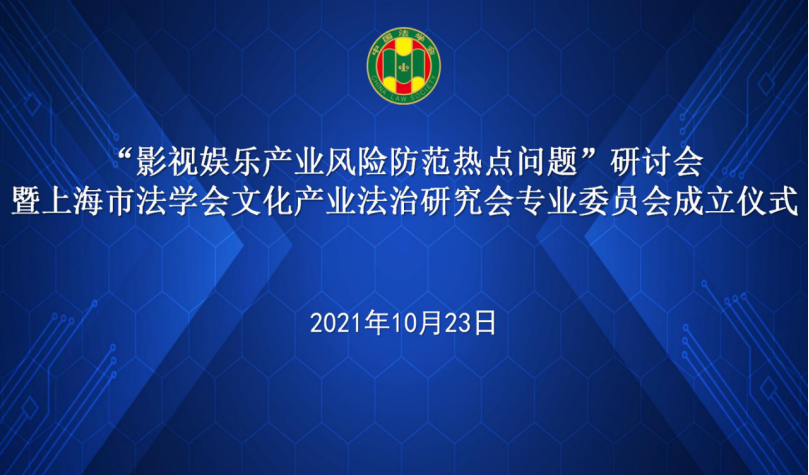 2021年10月23日,上海市法学会文化产业法治研究会、上海大学法学院共同主办的“影视娱乐产业风险防范热点问题”研讨会暨上海市法学会文化产业法治研究会专业委员会成立仪式在上海大学法学院504会议室隆重召开。此次会议汇聚了文化产业领域的众多专家学者及实务工作者,共同探讨文化产业法治发展及风险防范等关键问题。