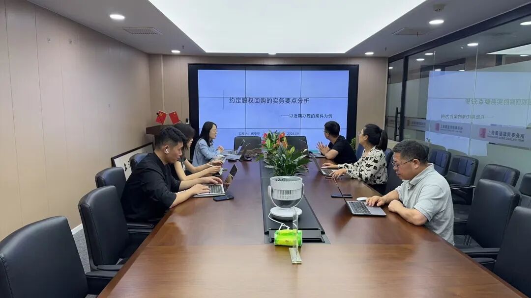 2025 年 9 月 5 日 14:00,上海董道律师事务所内部学习会如期举行。本次学习会聚焦投融资领域高频争议问题 ——“约定股权回购的实务要点”,由具有丰富实战经验的祝亭亭律师主讲。祝律师结合近期办理的典型案例,从定义边界、性质争议、回购对象、价格确定、实操细节到司法趋势,全方位拆解了约定股权回购的核心要点,为律师同行们带来了一场兼具理论深度与实践价值的专业分享。